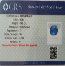 - Product Name Natural Blue Sapphire With Certificate .