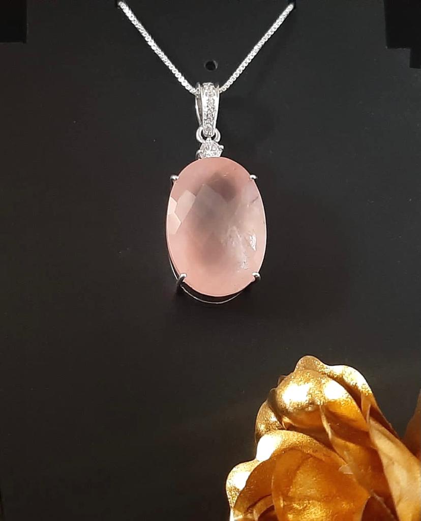 - Product Name Rose Quartz & Cz Silver Pendant